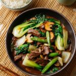 This Beef Stir-Fry with Vegetables is a quick and flavorful dish featuring tender flank steak marinated and seared to perfection, combined with vibrant bok choy, mushrooms, and snap peas in a savory soy-based sauce. Perfect for a weeknight dinner, it offers a satisfying balance of protein and crunchy vegetables with a rich, thickened sauce.