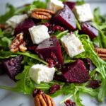 A vibrant and flavorful Beet Salad with creamy goat cheese, crunchy toasted pecans, and a tangy balsamic vinaigrette. This elegant and easy-to-make salad is perfect for holiday gatherings, entertaining guests, or a fresh dinner at home.