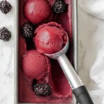 - Churn Sorbet: Pour the chilled blackberry mixture into your ice cream maker following the manufacturer’s instructions. Churn for about 20 minutes or until it reaches a soft-scoop consistency.