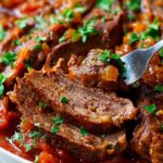 A richly savory beef brisket braised with sweet onions, garlic, tomato paste, and hearty carrots, delivering tender, flavorful meat perfect for a comforting family meal. This recipe features an oven-braised method yielding a well-browned crust and succulent texture, ideal for serving 8 to 10 people.
