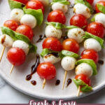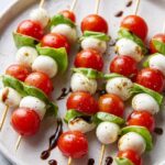 Caprese Skewers are a fresh and simple appetizer featuring cherry tomatoes, fresh basil, and mini mozzarella balls drizzled with extra-virgin olive oil and balsamic glaze. Perfect for parties and easy to assemble, these skewers capture the classic Caprese salad flavors in a handheld treat.