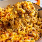 - This recipe is a one-pot meal combining ground beef and cheddar cheese reminiscent of classic Hamburger Helper flavors.