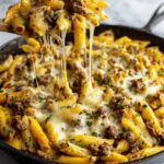 - Add pasta and cheese: Toss the cooked pasta into the skillet with the beef mixture. Stir in 1 cup of shredded mozzarella cheese.