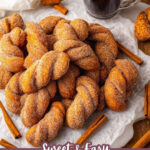 You can bake these twists for a lighter version. Preheat the oven to 375°F, place the twisted doughnuts on a parchment-lined sheet, and bake for 15-18 minutes or until golden. After baking, toss them in the cinnamon sugar coating while warm. They won’t have the same crispiness as fried but are still delicious.