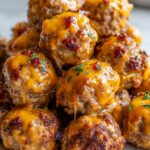 Delicious and creamy Cream Cheese Sausage Balls made with hot pork sausage, cream cheese, Bisquick baking mix, and cheddar cheese. Perfect as a savory appetizer or snack, these sausage balls are easy to make and bursting with cheesy flavor.