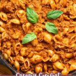 One-Pot Creamy Beef and Shells is a comforting and hearty dish featuring browned ground chuck sautéed with onions and garlic, simmered in a creamy tomato sauce with medium shell pasta. Finished with grated Pecorino Romano and fresh basil, this easy-to-make recipe is perfect for a satisfying weeknight dinner.