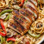 A rich and flavorful Creamy Cajun Chicken Pasta featuring juicy Cajun-spiced chicken breasts, sautéed multi-color bell peppers, onions, and mushrooms tossed in a luscious creamy sauce with linguine pasta. This comforting dish combines bold Cajun seasoning with a smooth, indulgent cream sauce for a quick and satisfying meal ready in just 30 minutes.