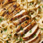A creamy and comforting Chicken Alfredo recipe featuring tender pan-seared chicken breasts and homemade Alfredo sauce with Parmesan and heavy cream, served over perfectly cooked fettuccine pasta and garnished with fresh parsley.