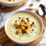 - Serve: Ladle the soup into bowls and add desired toppings such as an extra drizzle of cream, crispy pancetta or bacon, croutons, and fresh chives. Enjoy warm.