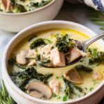 A cozy and creamy paleo chicken soup featuring tender chicken thighs, sautéed leeks, mushrooms, and nutrient-rich kale in a rich coconut milk and bone broth base. This Whole30-compliant recipe is dairy-free, flavorful, and perfect for a healthy weeknight dinner.