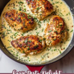This creamy pesto chicken recipe features tender chicken cutlets simmered in a luscious pesto cream sauce. With just five simple ingredients, it offers a quick, flavorful, and elegant meal perfect for any weeknight dinner.