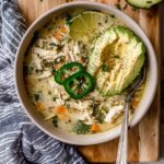 This White Chicken Chili recipe is a hearty and flavorful slow cooker meal that is dairy-free and perfect for busy weeknights. It combines tender chicken breasts or thighs with aromatic spices, creamy coconut milk, and fresh lime and cilantro for a delicious twist on traditional chili. Customize it with beans or your favorite toppings for a nutritious and comforting dish.