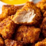 This homemade Chicken Nuggets recipe features tender pieces of boneless skinless chicken breast marinated in dill pickle juice and milk, then coated in a flavorful seasoned breadcrumb mixture and fried to a crispy golden brown. Perfectly crispy on the outside and juicy on the inside, these nuggets are an irresistible copycat of a classic favorite.
