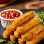 Crispy and gooey Fried Mozzarella Cheese Sticks featuring a seasoned double coating fried to golden perfection. Perfect appetizer or snack for cheese lovers craving a crunchy, melty treat.
