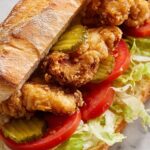 - Assemble the Po' Boys: Spread a generous amount of remoulade sauce on the bottom half of each loaf. Layer the fried shrimp evenly over the sauce, then add shredded iceberg lettuce, sliced tomatoes, and dill pickles on top. Close the sandwich and press lightly to hold.