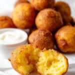 - Work in batches to prevent lowering the oil temperature which can cause greasy hush puppies.