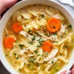 This homemade crockpot chicken noodle soup is a comforting and hearty meal made with tender chicken breasts, fresh vegetables, aromatic herbs, and wide egg noodles, all slow-cooked to perfection for rich, savory flavor. It’s an easy, preservative-free recipe perfect for cozy dinners or meal prep.