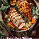 Carve the turkey breast by sliding your knife gently along the bones to remove the meat, then slice against the grain for tender pieces. Arrange on a platter with roasted veggies and plenty of fresh herbs. A squeeze of lemon on top just before serving brightens all those lovely herb flavors.