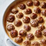 This easy Swedish Meatballs recipe features tender frozen meatballs simmered in a rich, creamy sauce made with butter, flour, beef broth, and heavy cream. Served best over egg noodles, rice, or mashed potatoes, this comforting dish comes together quickly and is perfect for a satisfying meal any night of the week.