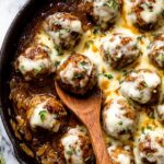 French Onion Meatballs combine tender, juicy ground beef meatballs with a rich, deeply caramelized French onion sauce topped with melted Gruyere and mozzarella cheese. Perfectly seared and broiled to gooey cheesy perfection, these meatballs make a comforting and elegant meal served with toasted bread or mashed potatoes.
