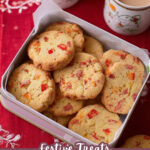 These Fruitcake Cookies are buttery shortbread-style treats loaded with finely diced candied fruit and chopped almonds, subtly flavored with dry sherry, lemon juice, and warm spices. Perfect for holiday gifting or festive parties, they offer classic fruitcake flavors in a convenient cookie form that’s easy to make ahead.