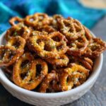 Easy Garlic Parmesan Pretzels are a quick and flavorful snack perfect for parties or game days. This recipe combines mini twist pretzels with melted butter, garlic, and Parmesan cheese, baked to crispy perfection and garnished with fresh parsley for a delicious bite-sized treat.