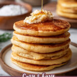 For holiday breakfasts, I like to stack the pancakes high, layer them with whipped gingerbread butter between each layer, and top with a drizzle of caramel sauce along with fresh cranberries for color. It feels festive and festive, making mornings feel extra special.
