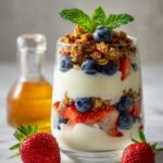 This Greek Yogurt Parfait is a quick and nutritious breakfast option featuring creamy Greek yogurt layered with fresh berries and crunchy granola, optionally sweetened with honey or maple syrup. It's easy to prepare, perfect for meal prep, and bursts with flavor and texture in every bite.