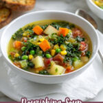 A hot and comforting vegetable soup packed with vibrant veggies and herbs, simmered to tender perfection in a rich vegetable broth, perfect for a healthy and cozy meal.