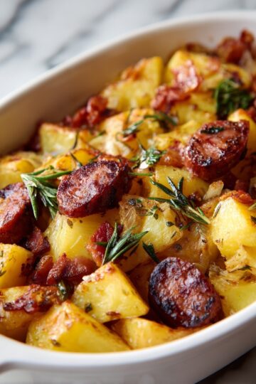- Low and Slow Cooking: Cooking at 300°F for at least 2 hours allows the sausages, bacon, and potatoes to become beautifully tender while letting all those rich flavors meld together. Don’t rush this step—it’s worth the wait!