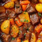 This Easy Homemade Beef Stew features tender chunks of beef chuck roast slow-cooked with carrots, potatoes, and a rich, savory broth seasoned with garlic, tomato paste, and fresh thyme. Perfect as a comforting, hearty meal, this stew is simple to prepare and yields a satisfying dinner.