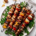 Honey Garlic Chicken Kabobs are a delicious and flavorful grilled dish featuring tender boneless chicken breasts marinated in a sweet and savory honey garlic sauce, skewered with colorful onions and bell peppers. Perfect for a sunny day barbecue, these kabobs offer a perfect balance of sweetness from honey, a touch of saltiness from soy sauce, and a hint of garlic spice.