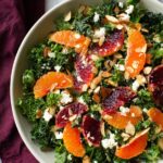 A vibrant and nutritious Kale Orange Salad combining fresh kale, sweet citrus fruits, toasted almonds, and creamy goat cheese with a tangy white balsamic vinaigrette. Perfect for a healthy winter side or light meal.