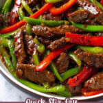 A quick and easy Pepper Steak Stir Fry featuring thinly sliced flank steak cooked with vibrant red and green bell peppers in a savory soy-ginger sauce. This delicious dish is perfect for a flavorful weeknight dinner that beats takeout.