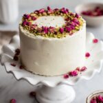 Persian Love Cake is a delicate and fragrant almond cake infused with cardamom, lemon zest, rosewater, and vanilla. This light and airy cake is topped with a tangy lemon glaze and garnished with crunchy pistachios and dried rose petals, making it perfect for special occasions or an elegant dessert.