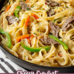 Philly Cheesesteak Pasta features tender strips of steak, sautéed onions and green bell peppers, tossed with pappardelle pasta in a rich, creamy cheese sauce. This dish combines the classic flavors of a Philly cheesesteak sandwich with the comfort of pasta for an indulgent and satisfying meal.