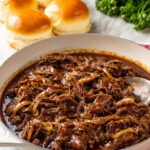 Skillet Barbecue Beef Sandwiches are a quick and delicious meal featuring tender strips of thinly sliced roast beef cooked with caramelized onions and coated in a flavorful barbecue sauce. Ready in just 15 minutes, these sandwiches are perfect for a stress-free dinner piled high on your favorite sandwich buns.