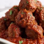 These slow cooker meatballs in rich tomato sauce are a comforting and flavorful dish perfect for easy weeknight dinners or casual gatherings. Made with a blend of beef and Italian turkey sausage, seasoned with fresh herbs and Pecorino Romano cheese, then simmered low and slow to tender perfection in a savory tomato sauce.