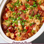 - Final Stir and Serve: Remove the lid and gently stir the jambalaya to fluff the rice and mix ingredients without breaking the grains. Sprinkle the sliced green onions on top and serve warm.