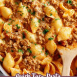 This one-pot Taco Pasta recipe combines savory ground beef with a creamy, cheesy sauce infused with taco seasoning and diced tomatoes with green chilies. It's an easy, comforting dish perfect for busy weeknights that delivers bold Mexican-inspired flavors in a creamy pasta format.