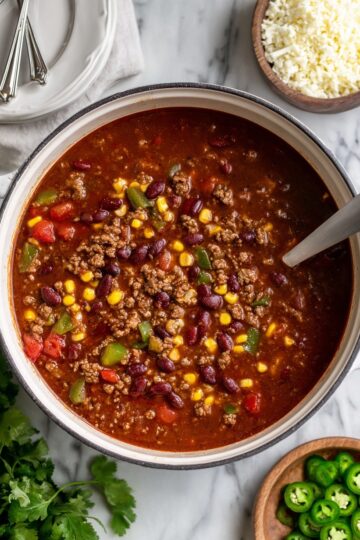 - Vegetarian Variation: Swap the ground beef for a plant-based meat substitute or simply add extra beans and use vegetable broth instead of beef broth. I’ve made this version for meat-free nights, and it’s just as hearty and flavorful!