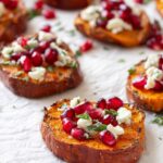 - Add Toppings: Remove the sweet potatoes from the oven and while still warm, drizzle them with the warmed honey. Sprinkle feta cheese crumbles, pomegranate arils, and finely chopped fresh parsley on top for a burst of flavor and color.