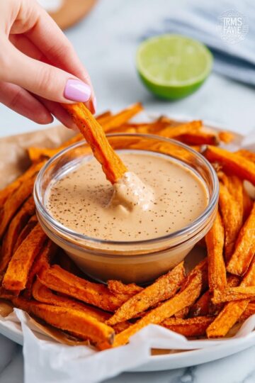 If you want to freeze the fries, lay them out in a single layer on a baking sheet to freeze individually first, then transfer to a freezer-safe bag or container. They can be frozen for up to 1 month. The dipping sauce is best made fresh and kept refrigerated for up to 3 days, but it’s not ideal for freezing.