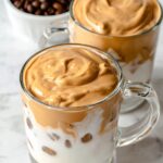 - Top and Serve: Evenly divide the whipped coffee topping between the two mugs. Stir gently to combine if desired, then enjoy immediately.